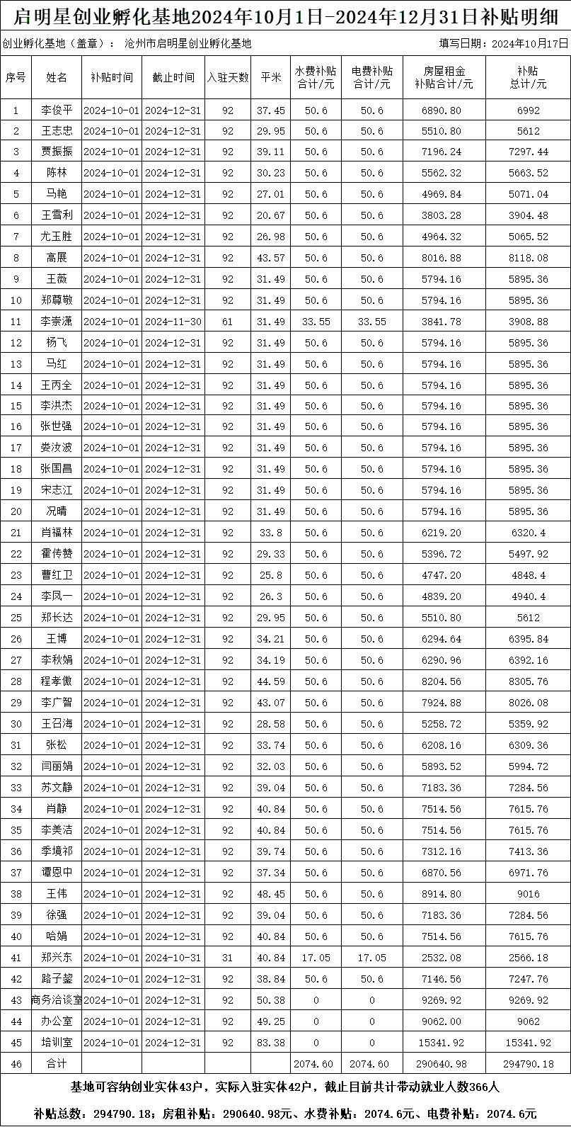 2024.10.1-2024.12.31孵化基地房屋補貼金額290640.986元