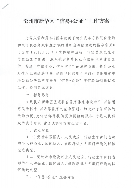 區(qū)信用辦發(fā)出召集令后各行業(yè)領域優(yōu)秀企業(yè)踴躍參與,河北省滄州市渤海公證處作為滄州市司法局下屬事業(yè)單位,位于滄州市新華區(qū)火車站九州大廈七樓,執(zhí)業(yè)區(qū)域為滄州市轄區(qū),業(yè)務范圍涵蓋民商事,金融,知識產權,互聯(lián)網等多個區(qū)域,于近日該單位向區(qū)信用辦提交申請,經區(qū)信用辦審查資質,協(xié)商優(yōu)惠條件后,共同制定了《新華區(qū)“信易+公證”工作方案》。