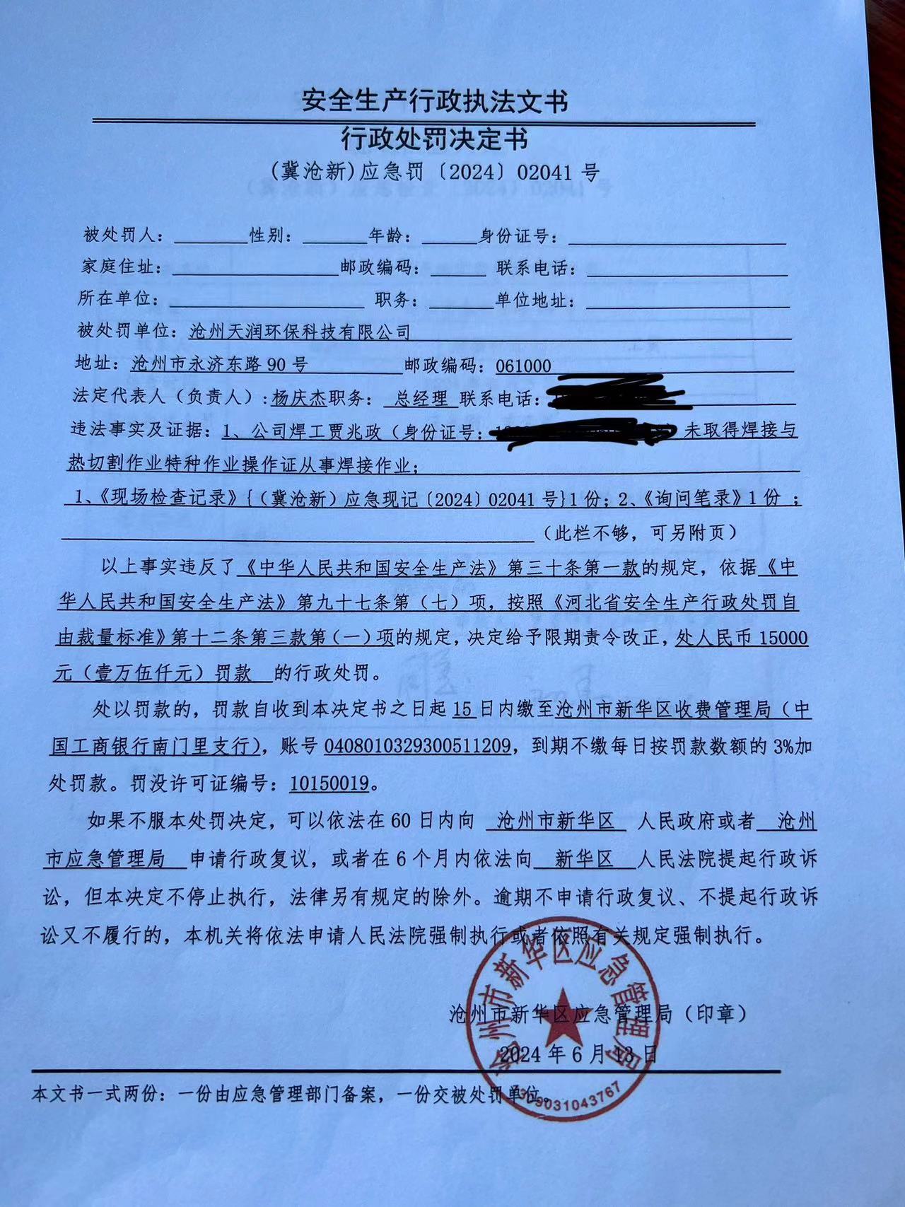 滄州天潤環(huán)??萍加邢薰竞腹べZ兆政未取得焊接與熱切割特種作業(yè)操作證從事焊接作業(yè)案