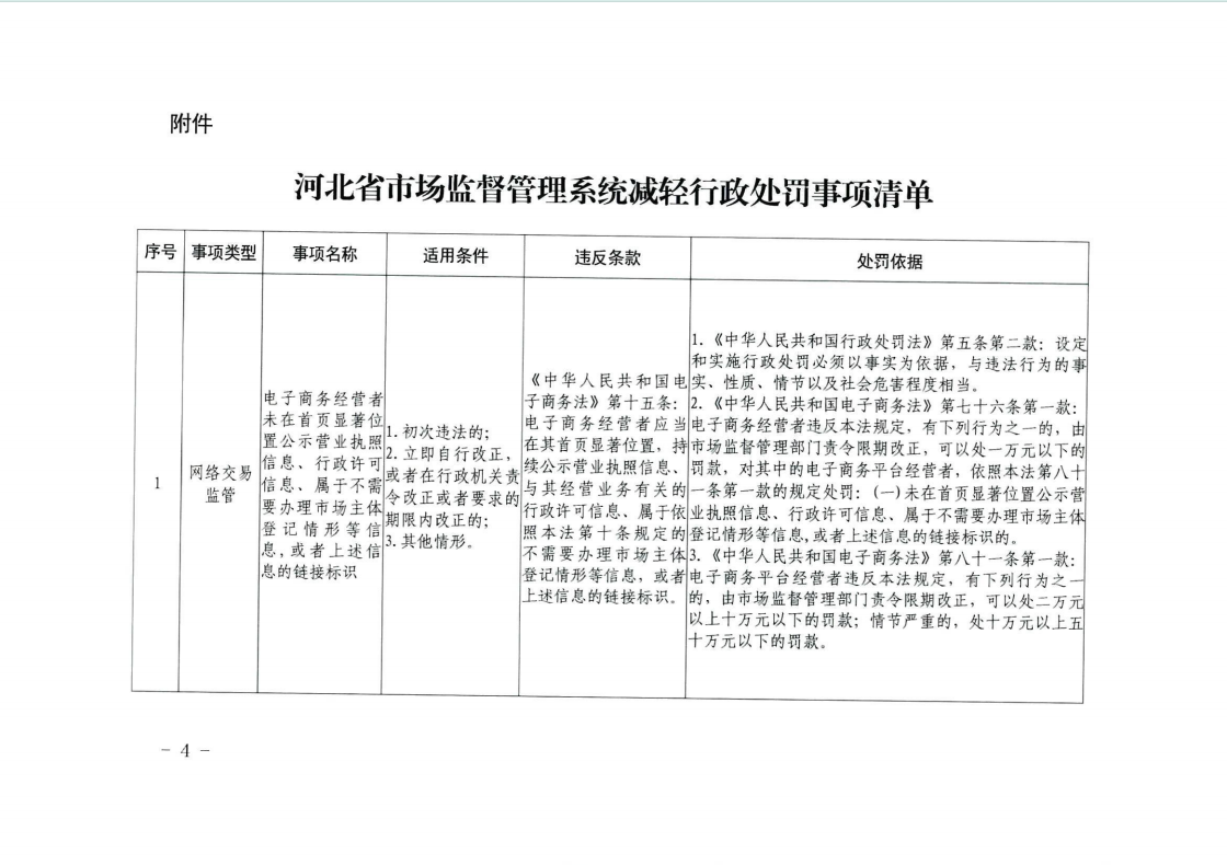 河北省市場(chǎng)監(jiān)督管理系統(tǒng)減輕行政處罰事項(xiàng)清單
