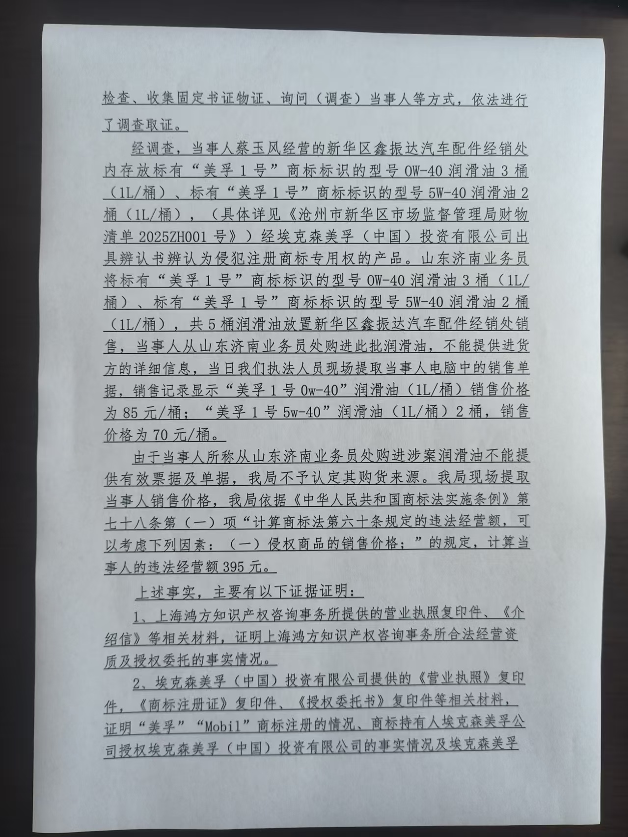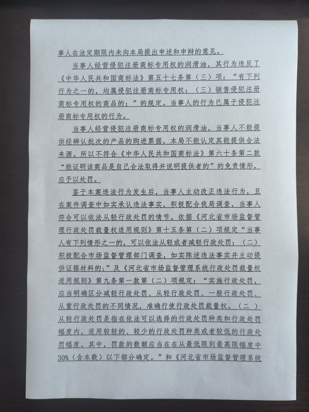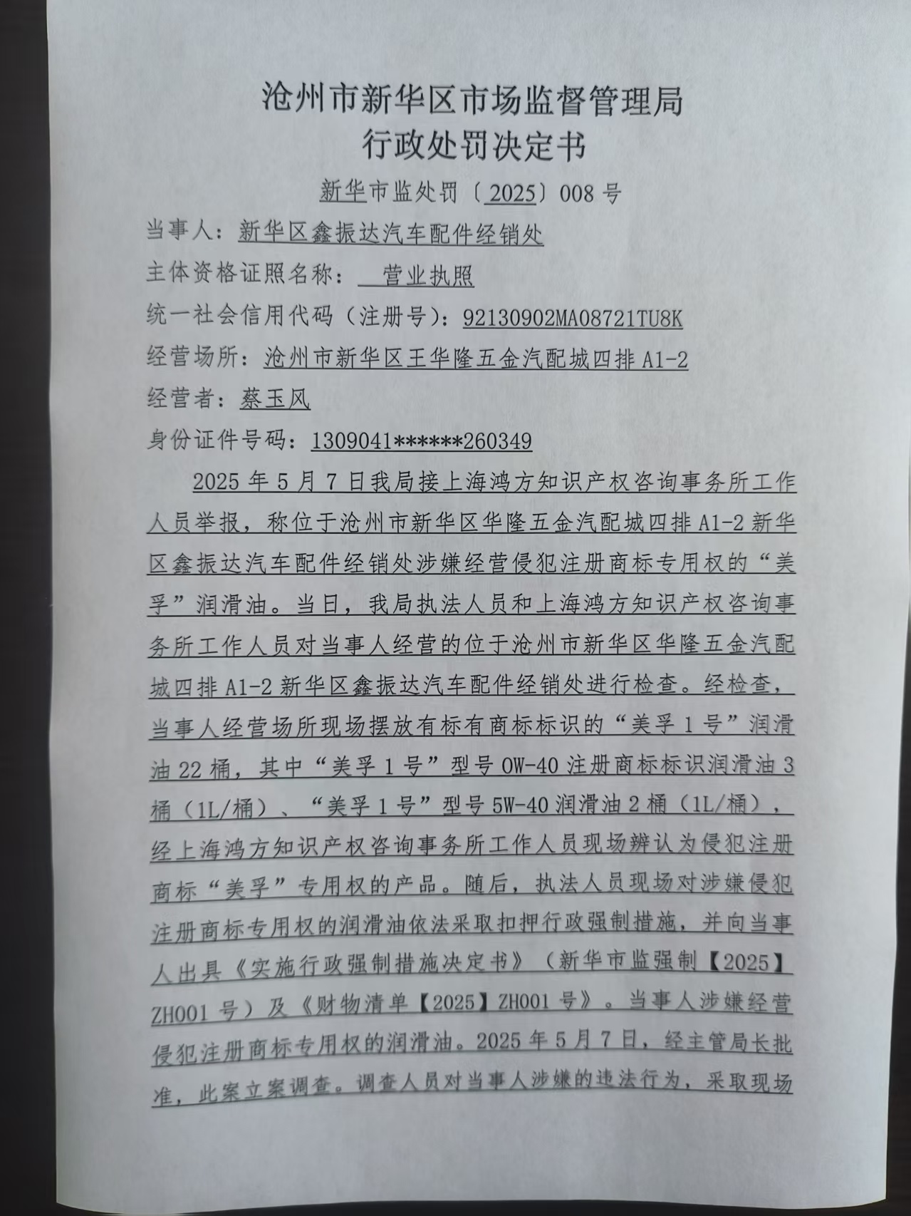 新華區(qū)鑫振達(dá)汽車配件經(jīng)銷處經(jīng)營侵犯注冊商標(biāo)專用權(quán)的潤滑油案