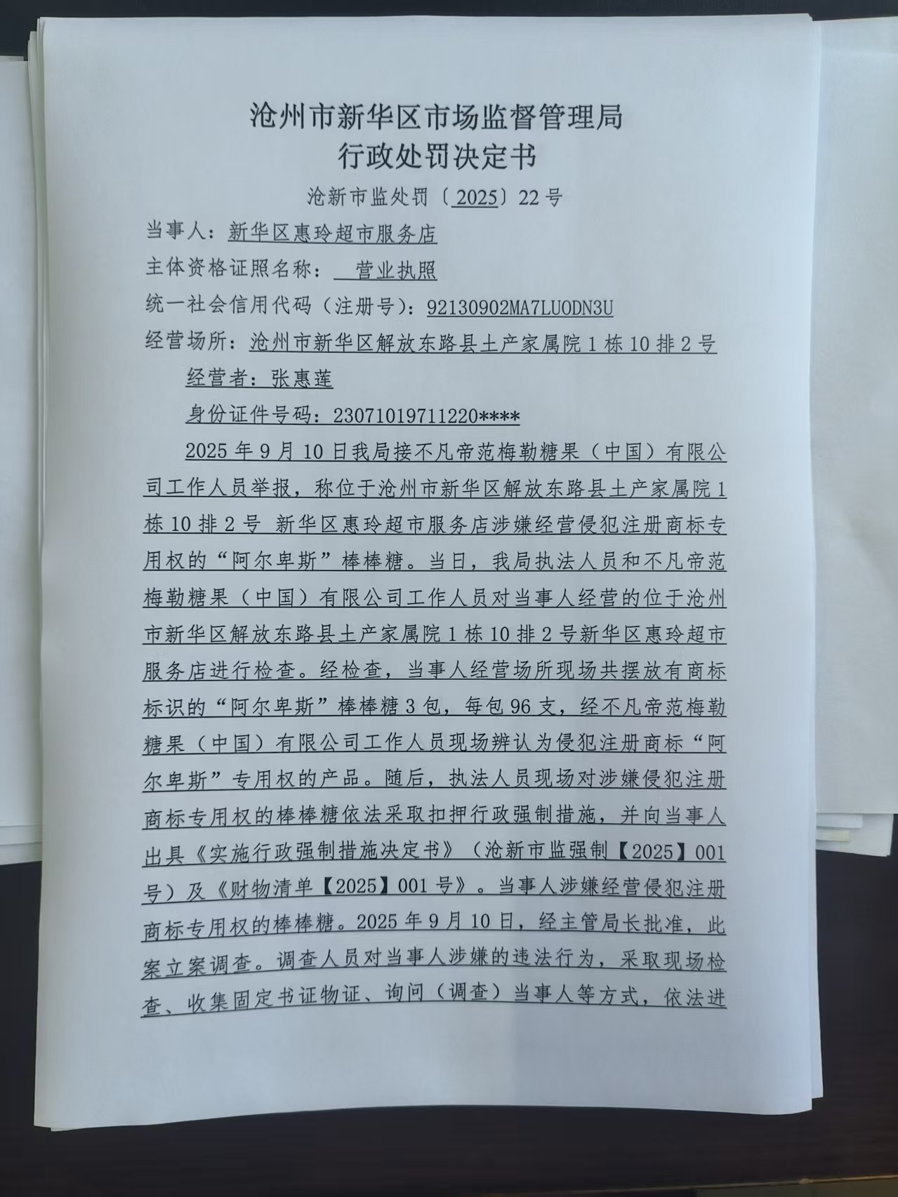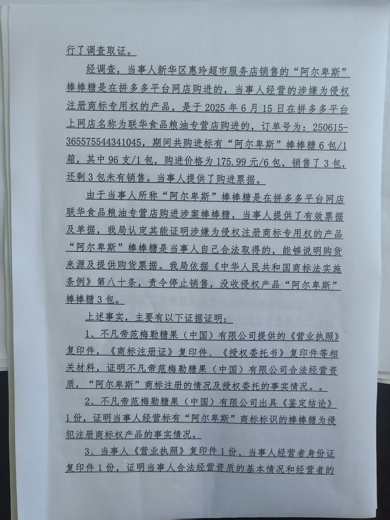 新華區(qū)惠玲超市超市服務(wù)店經(jīng)營侵犯注冊商標(biāo)專用權(quán)的棒棒糖案