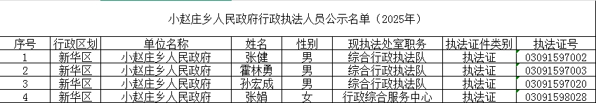 小趙莊鄉(xiāng)人民政府行政執(zhí)法人員公示名單(2025)