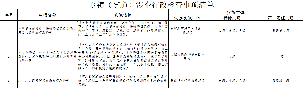 小趙莊鄉(xiāng)人民政府涉企行政檢查事項清單
