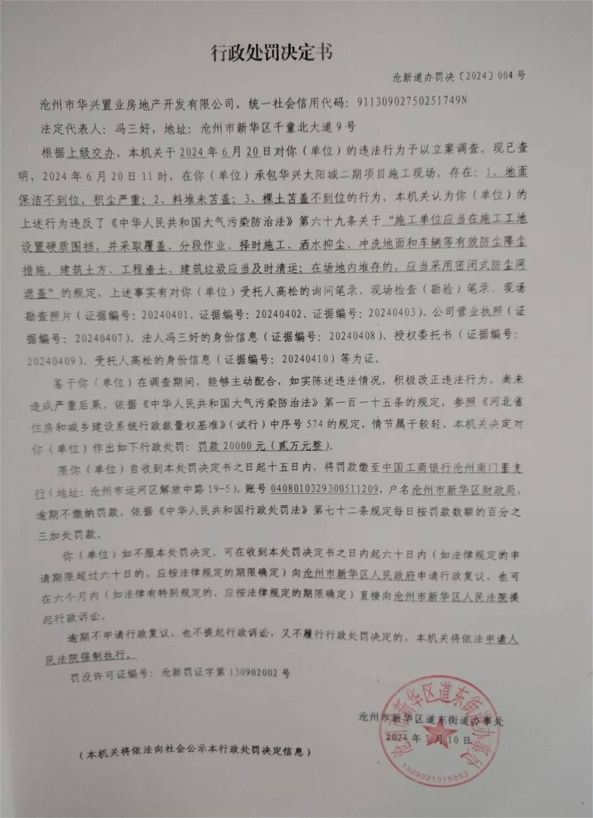 滄新道辦罰決【2024】004號