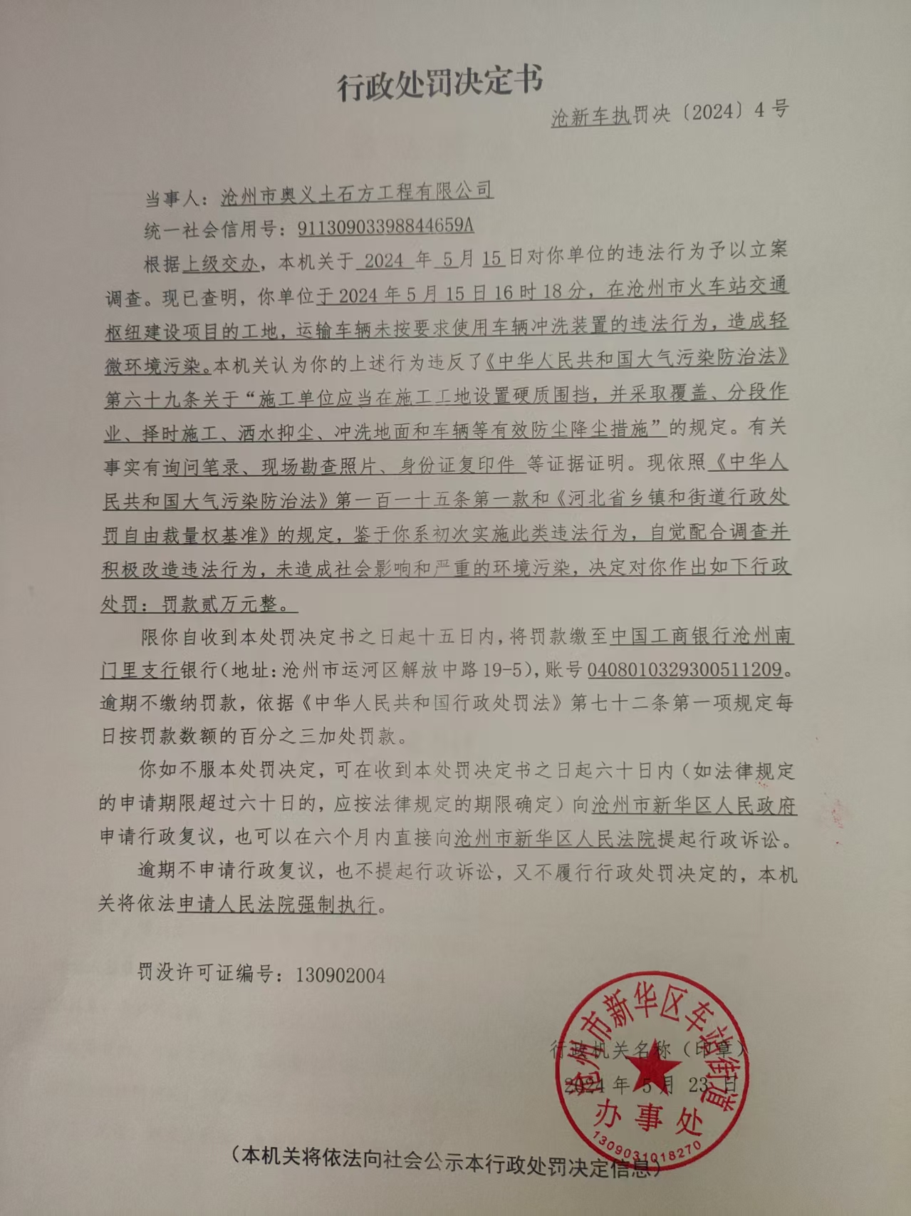 滄新車(chē)執(zhí)罰決〔2024〕4號(hào)