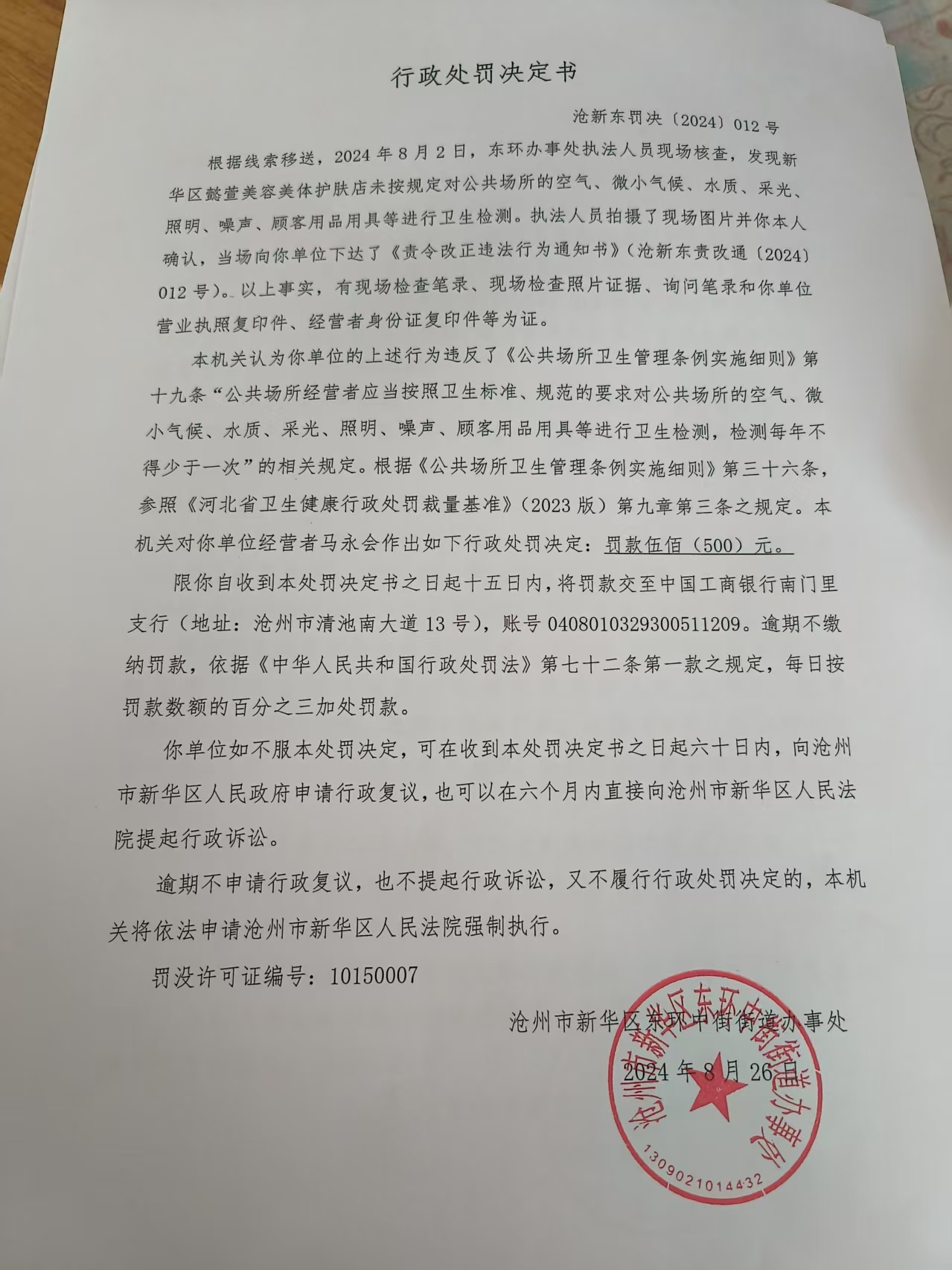 滄新東罰決【2024】012號