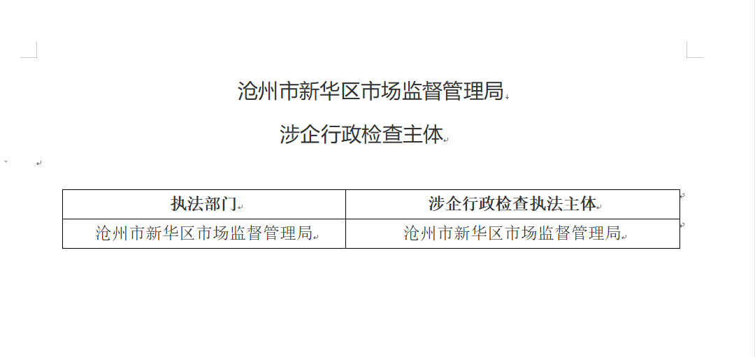 滄州市新華區(qū)市場(chǎng)監(jiān)督管理局 涉企行政檢查執(zhí)法主體