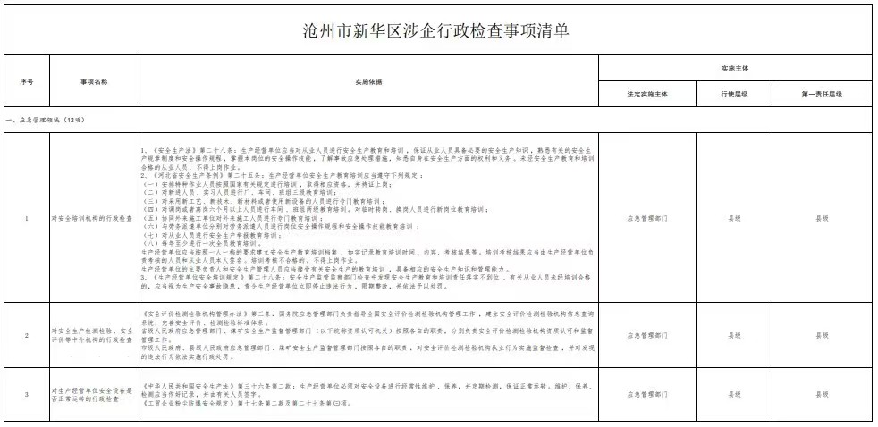 滄州市新華區(qū)應(yīng)急管理局涉企行政檢查事項清單