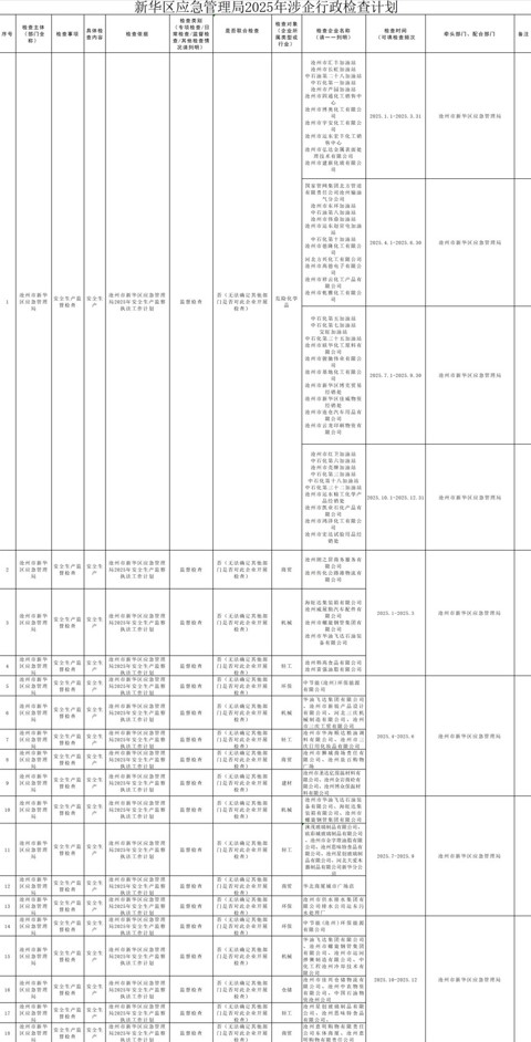 新華區(qū)應(yīng)急管理局2025年涉企行政檢查計(jì)劃